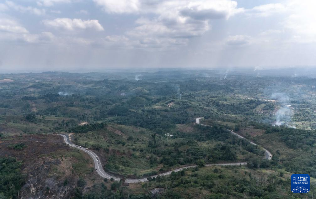 这是8月1日拍摄的连接布拉柴维尔和黑角的刚果(布)国家一号公路(无人机照片)。
