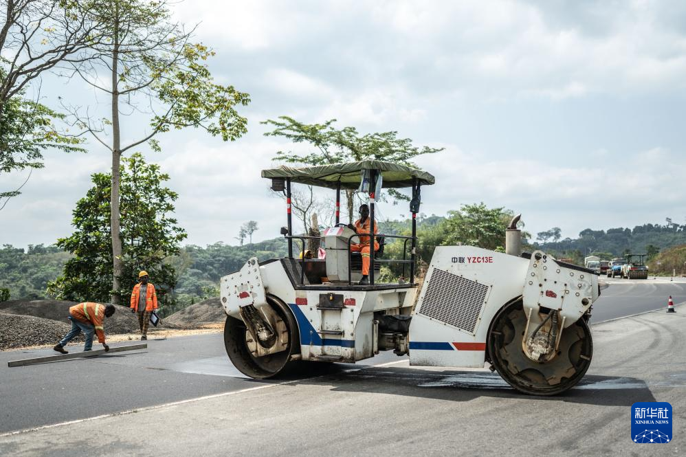 8月1日,刚果(布)国家一号公路特许经营项目公司(LCR)施工人员进行道路维护。