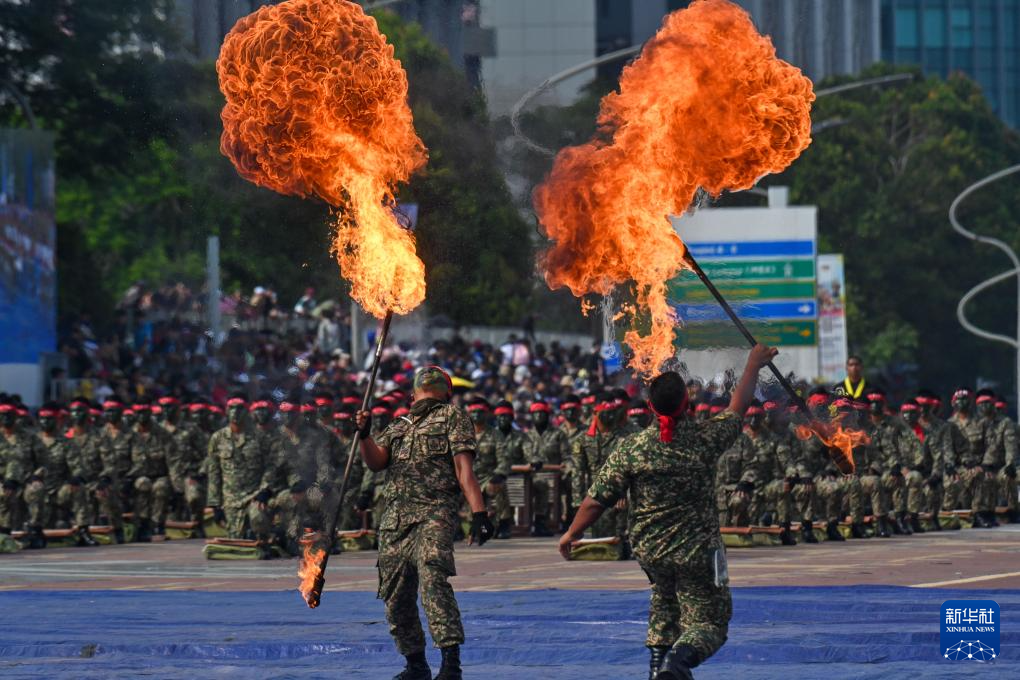 8月31日,在马来西亚普特拉贾亚,军人在马来西亚独立67周年庆典活动上表演。