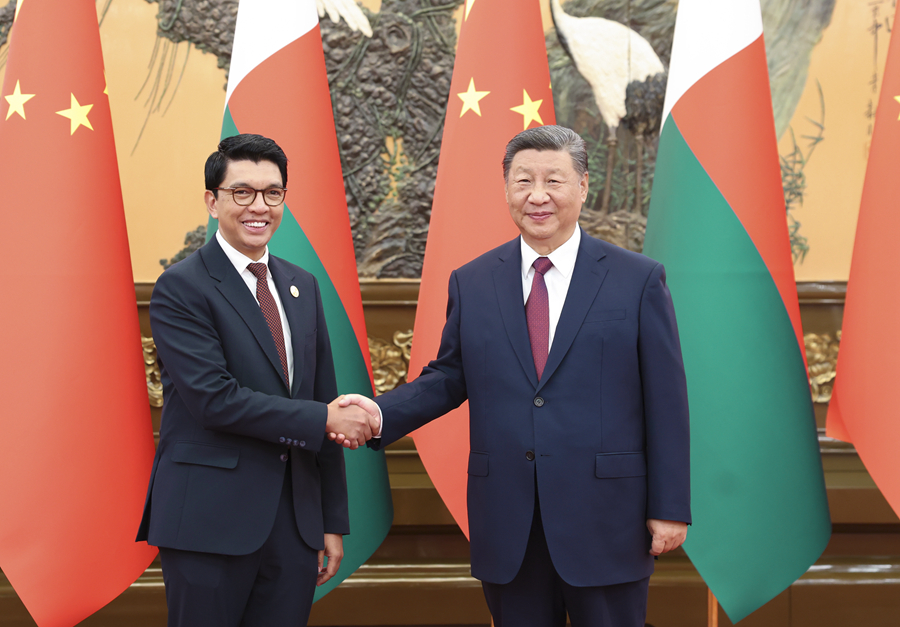 习近平指出,中马之间虽然远隔重洋,但两国人民相知相亲。建交52年来,双方始终坚持真诚友好、平等相待、互利共赢。特别是近年来,两国秉持建交初心,不断加强政治互信,深化各领域合作,两国人民的获得感日益增强。中方支持马达加斯加独立自主探索符合本国国情的现代化道路,愿同马方加强交流合作,拓宽务实合作,继续实施好杂交水稻技术援助项目,探讨加强矿业、新能源、蓝色经济、防灾减灾等领域合作。中方支持鲁班工坊、孔子学院在马达加斯加发展,助力马方培养更多现代化高素质人才。加强青年、文化、地方等人文交流,不断夯实两国友好民意基础。