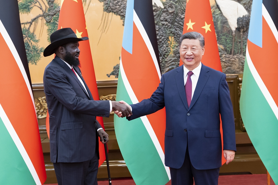 习近平指出,中国是最先同南苏丹建交的国家之一。建交13年来,双方政治互信牢固,各领域合作富有成果。相互尊重、真诚合作是中南关系的底色,携手同行、共谋发展是中南关系的未来。构建内涵丰富、充满活力的中南关系,符合两国人民共同期待和长远利益。中方愿同南方分享发展经验和机遇,继续实施教育技术等项目,加强石油、矿业、农业等领域合作,助力南苏丹经济多元化。中方愿同南苏丹落实好此次中非合作论坛北京峰会各项成果,推动双边合作走深走实。
