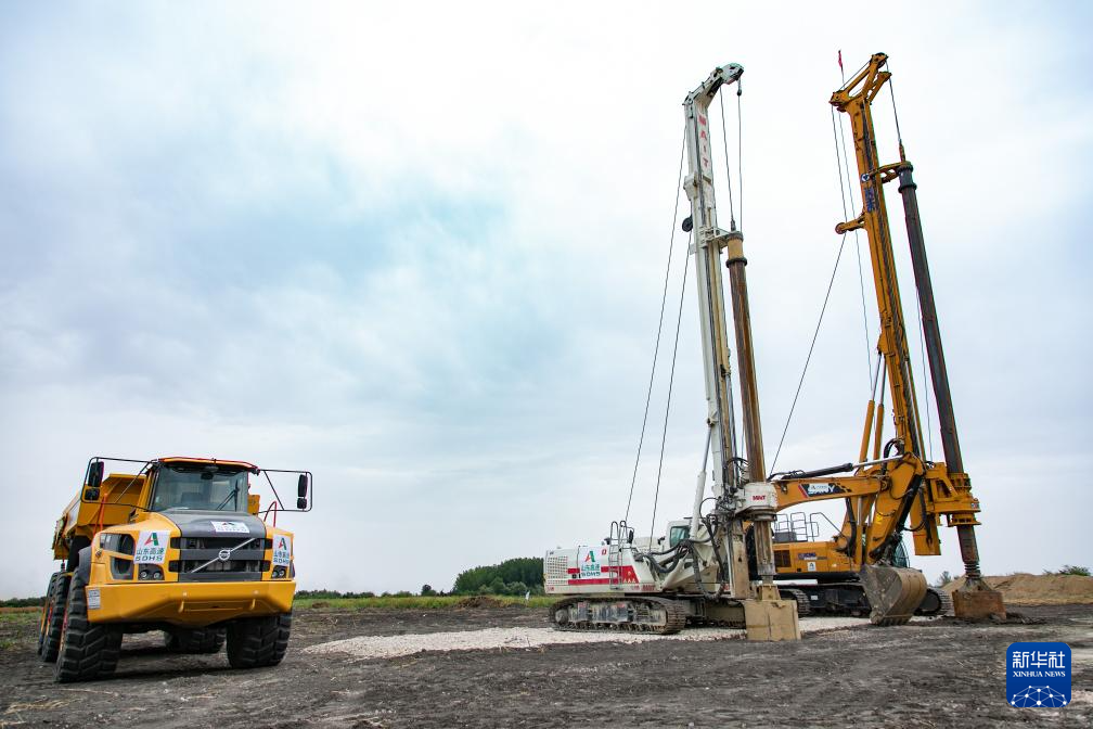 这是9月9日在塞尔维亚首都贝尔格莱德拍摄的兹雷尼亚宁高速公路项目施工现场。