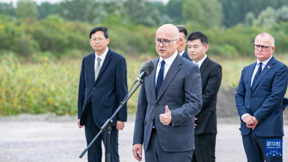 9月9日,在塞尔维亚首都贝尔格莱德,塞尔维亚总理武切维奇在兹雷亚宁高速公路项目启动仪式上致辞。