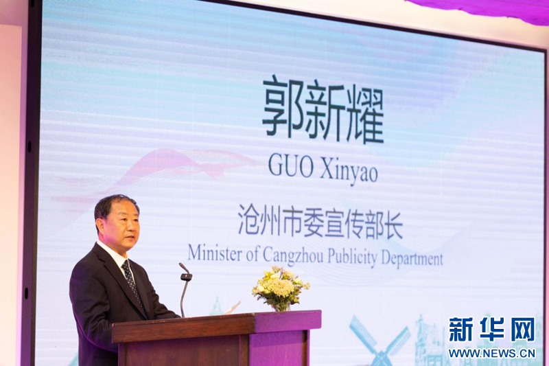 中国河北省沧州市委宣传部长郭新耀在活动上致辞。(沧州市国际传播中心欧洲分中心供图)
