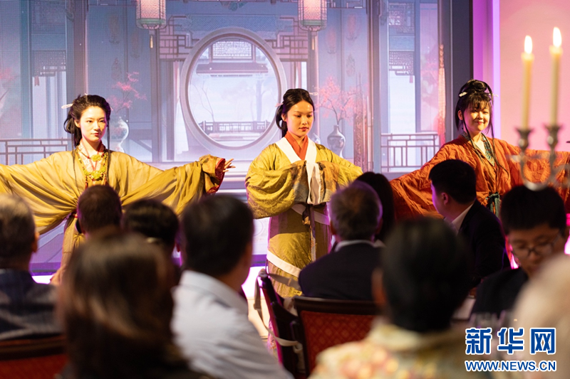 在荷兰的中国留学生在活动现场表演与中国河北沧州历史相关的汉服舞蹈。(沧州市国际传播中心欧洲分中心供图)