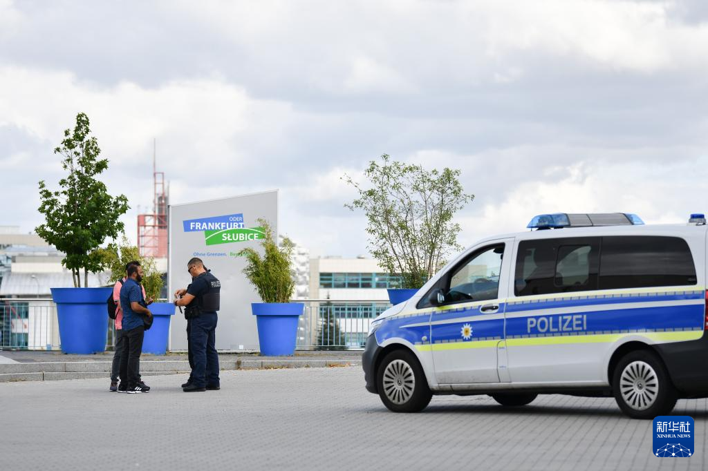 9月10日,在德国东部与波兰接壤的城市奥得河畔法兰克福,警察在德国和波兰边境执勤。