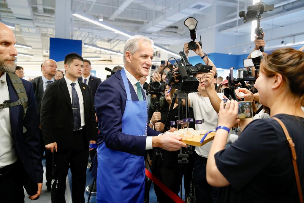 10日傍晚乘坐高铁抵达上海后,斯特勒前往东虹桥中心参加挪威海产推广活动。斯特勒说,海产品是挪威的第二大出口品类,很高兴看到挪威的海产品对中国的出口不断增长。“希望挪威企业与中国的合作伙伴进一步简化流程,缩短运输时间,让挪威的海产品更快抵达中国消费者的餐桌。”