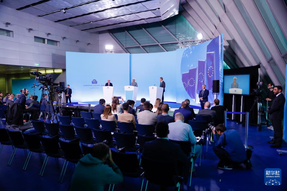 这是9月12日在德国法兰克福欧洲中央银行总部拍摄的新闻发布会现场。