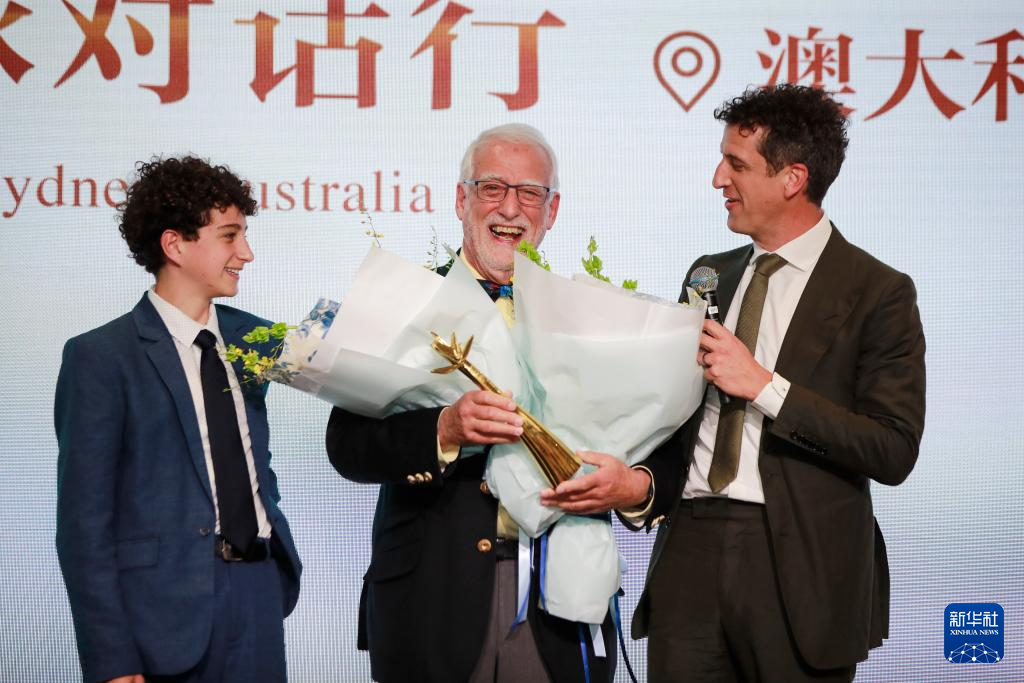 9月12日,在澳大利亚悉尼,西悉尼大学澳洲中国文艺研究会兼职教授、首届兰花奖“友好使者奖”获得者甘德瑞在活动上演讲。