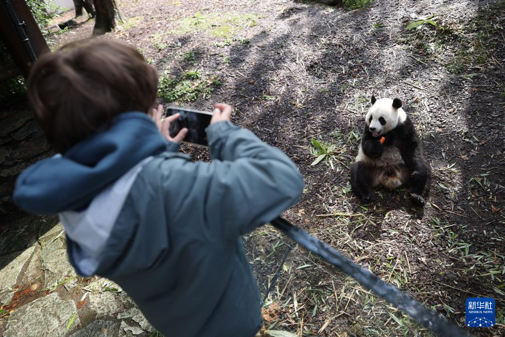 9月9日,在位于比利时布吕热莱特的天堂动物园,一名小朋友拍摄大熊猫“宝弟”。