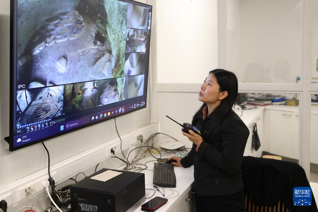 9月10日,在位于比利时布吕热莱特的天堂动物园,刘洋通过视频监控查看大熊猫情况。