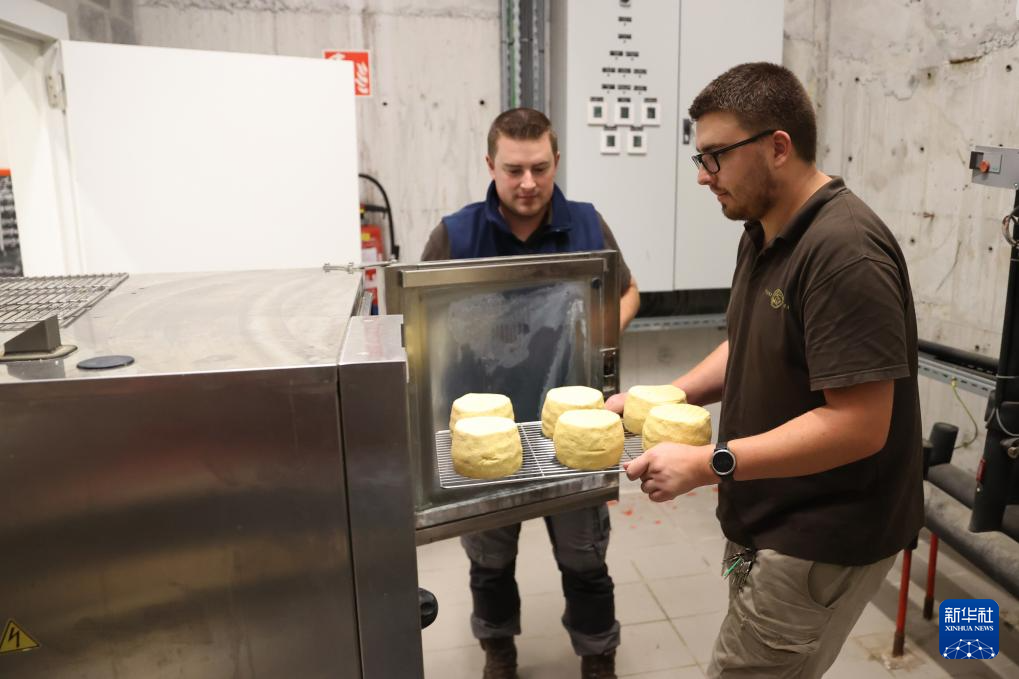 9月9日,在位于比利时布吕热莱特的天堂动物园,刘洋的外方同事马克西姆(右)和罗宾制作大熊猫爱吃的食物——“窝窝头”。
