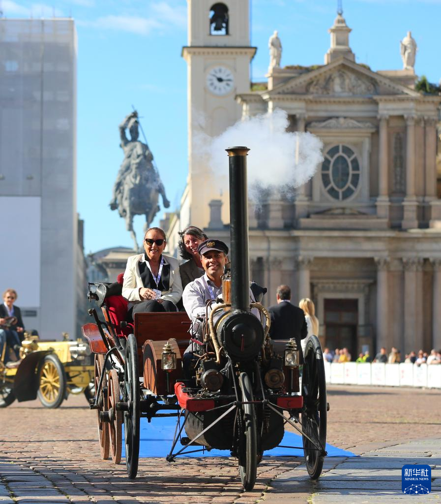 9月13日,在意大利都灵,参加车展的车辆经过市中心罗马街。