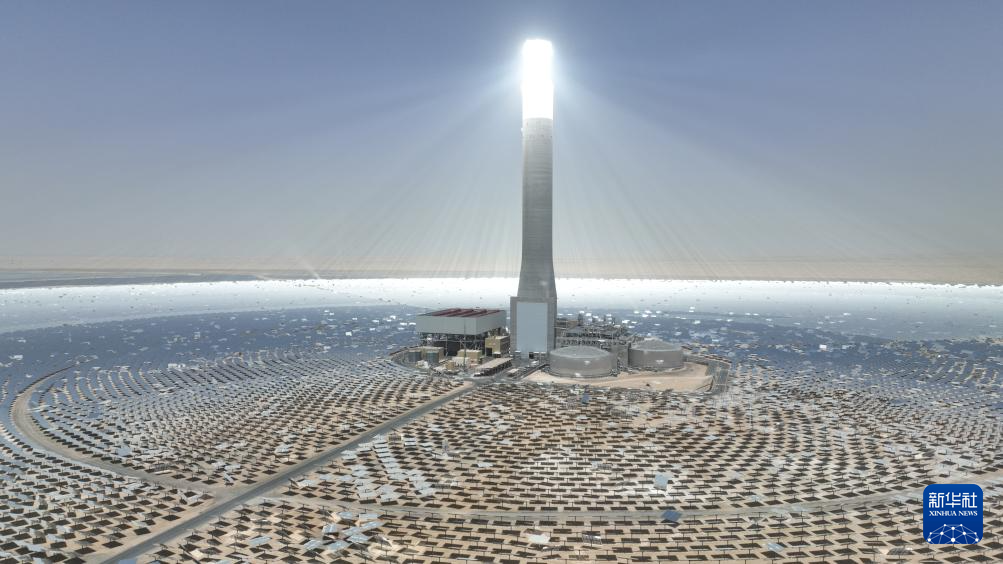 从阿联酋迪拜市区出发向南约65公里,在一望无垠的沙漠腹地,高达262米的集热塔巍然耸立,高塔下约7万面定日镜组成的镜场呈辐射状环绕延伸。这里是中国和阿联酋共建绿色丝绸之路重点合作项目——迪拜马克图姆太阳能公园四期光热光伏综合发电项目。2018年11月,上海电气集团股份有限公司以EPC总承包方式承建该项目,总装机容量950兆瓦,其中包括700兆瓦光热发电机组和250兆瓦光伏发电机组。今年2月,项目所有发电机组均已实现并网发电并投入商业运行,累计发电量达35亿千瓦时。