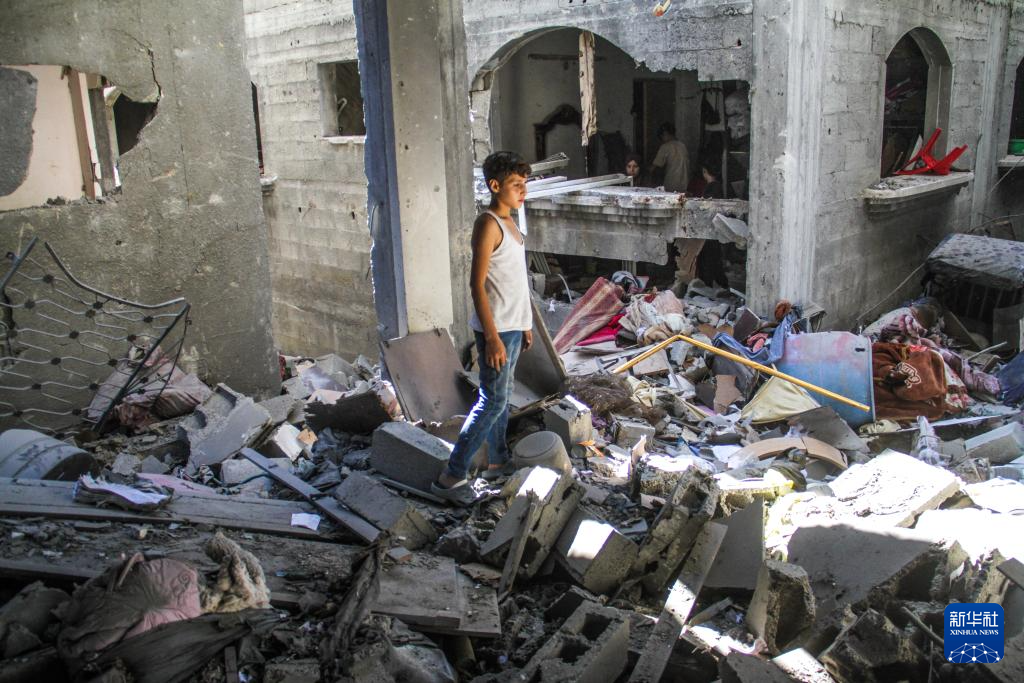 9月6日,巴勒斯坦人在加沙地带北部杰巴利耶地区查看房屋损毁情况。