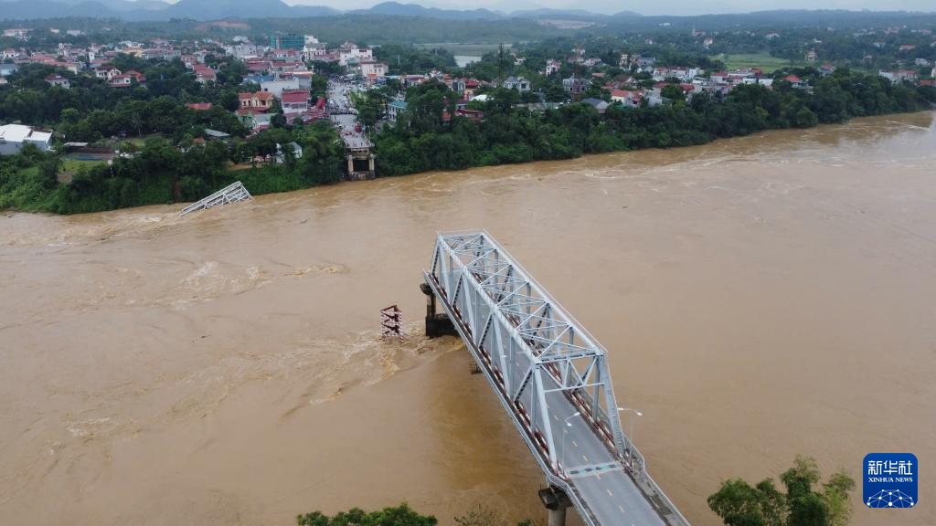 9月9日,越南北部富寿省一座钢桥倒塌(航拍照片)。
