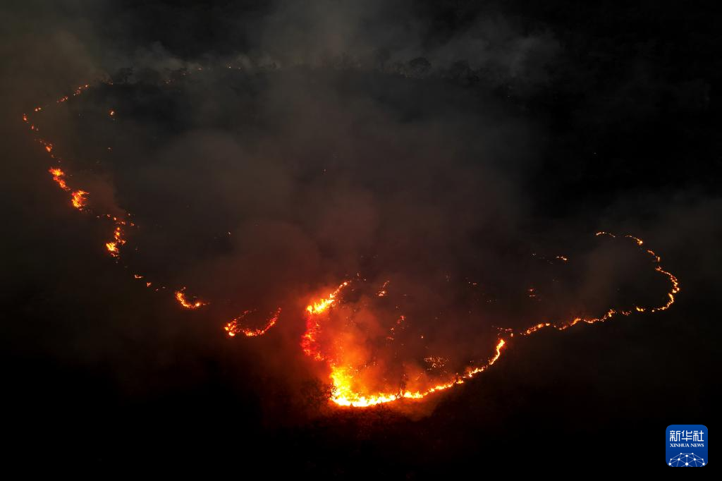 这是9月9日在巴西戈亚斯州拍摄的山火(无人机照片)。