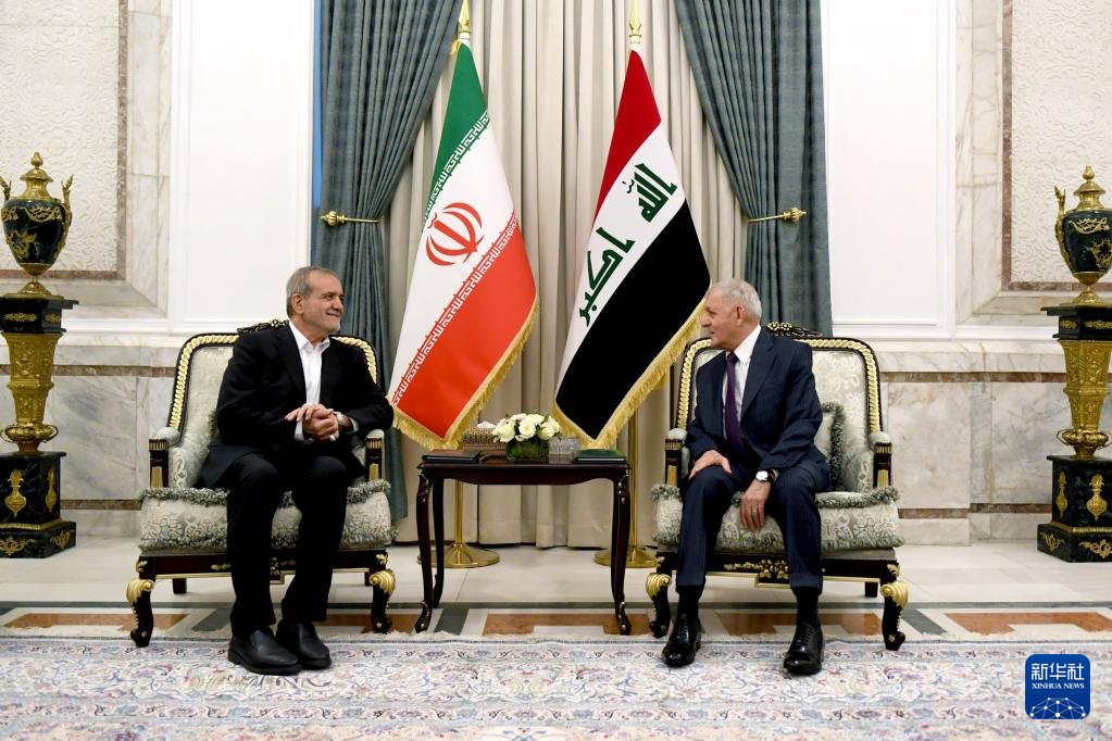 伊拉克总统拉希德和总理苏达尼11日在首都巴格达分别与到访的伊朗总统佩泽希齐扬举行会谈。两国领导人就巴以冲突和地区局势等交换意见,并签署涉及多个领域合作的谅解备忘录。
