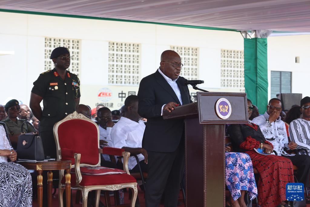9月13日,在加纳阿克拉,加纳总统阿库福-阿多在中国援建加纳渔港综合设施项目移交仪式上发表讲话。