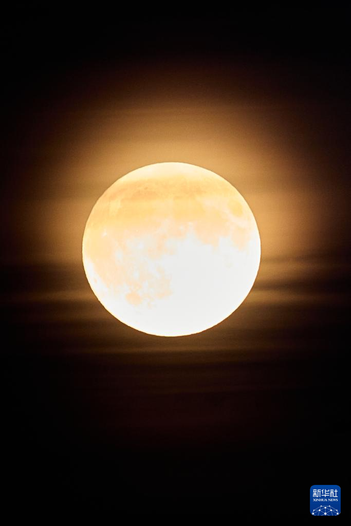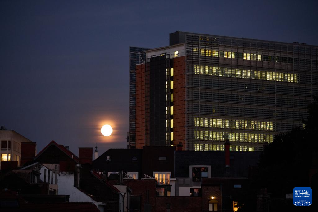这是9月17日在比利时布鲁塞尔拍摄的月亮。