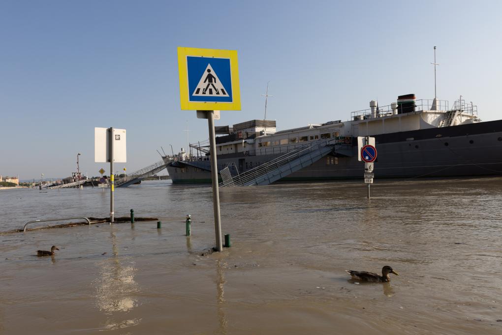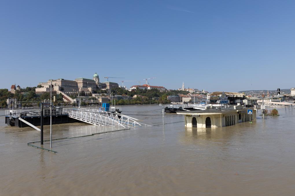 9月19日,在匈牙利首都布达佩斯,一处轮船码头被河水淹没。