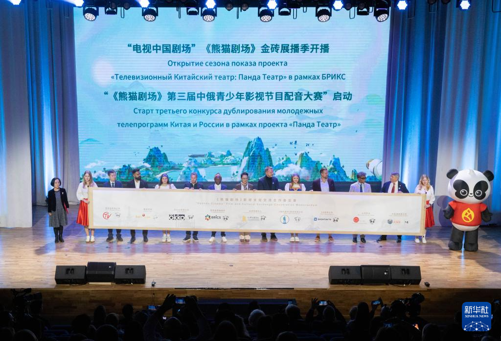 《熊猫剧场》年度开播暨金砖国家影视文化交流活动当地时间9月22日在莫斯科举行,来自中国、俄罗斯、巴西、印度、南非等金砖国家的相关部门、媒体影视机构代表及青少年代表900余人参加。