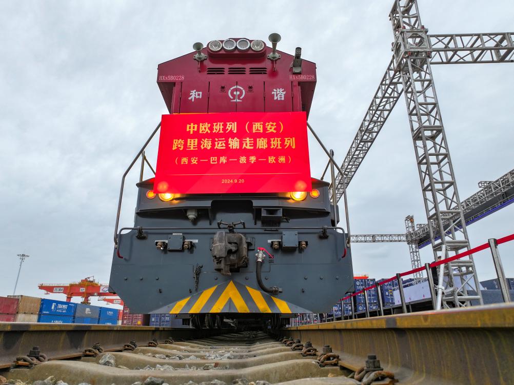 9月20日,中欧班列(西安)跨里海国际运输走廊发车仪式举行。(新华社发)
