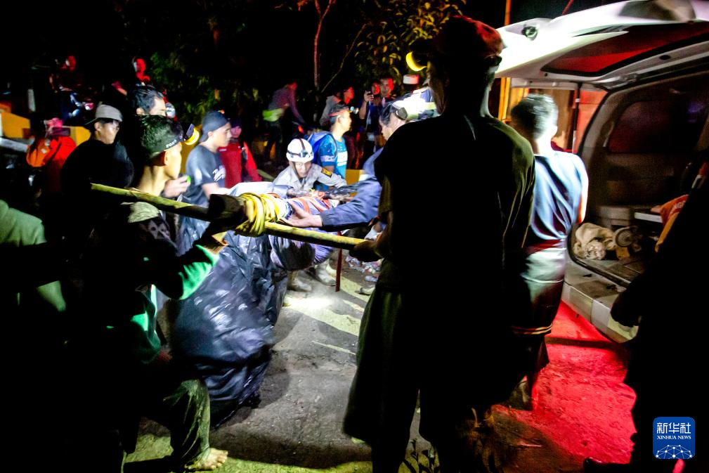9月28日,在印度尼西亚西苏门答腊省索洛克县事发金矿附近,救援人员转移一具遇难者遗体。