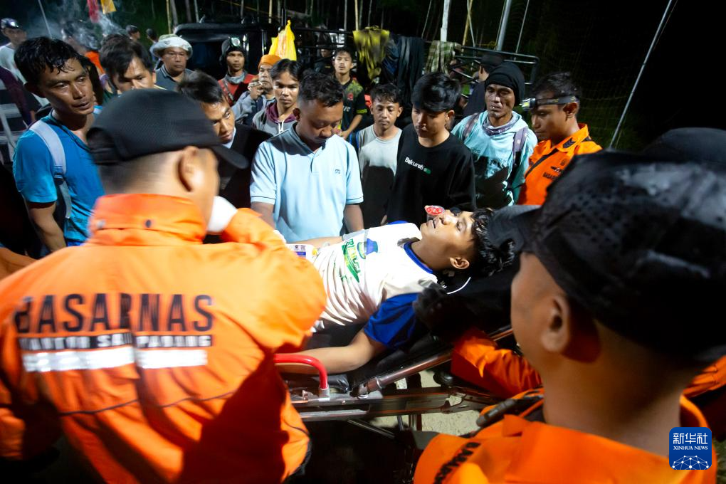 9月28日,在印度尼西亚西苏门答腊省索洛克县事发金矿附近,救援人员转移伤者。