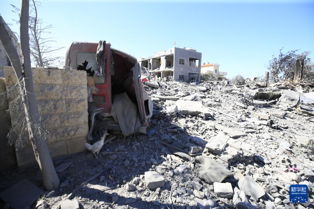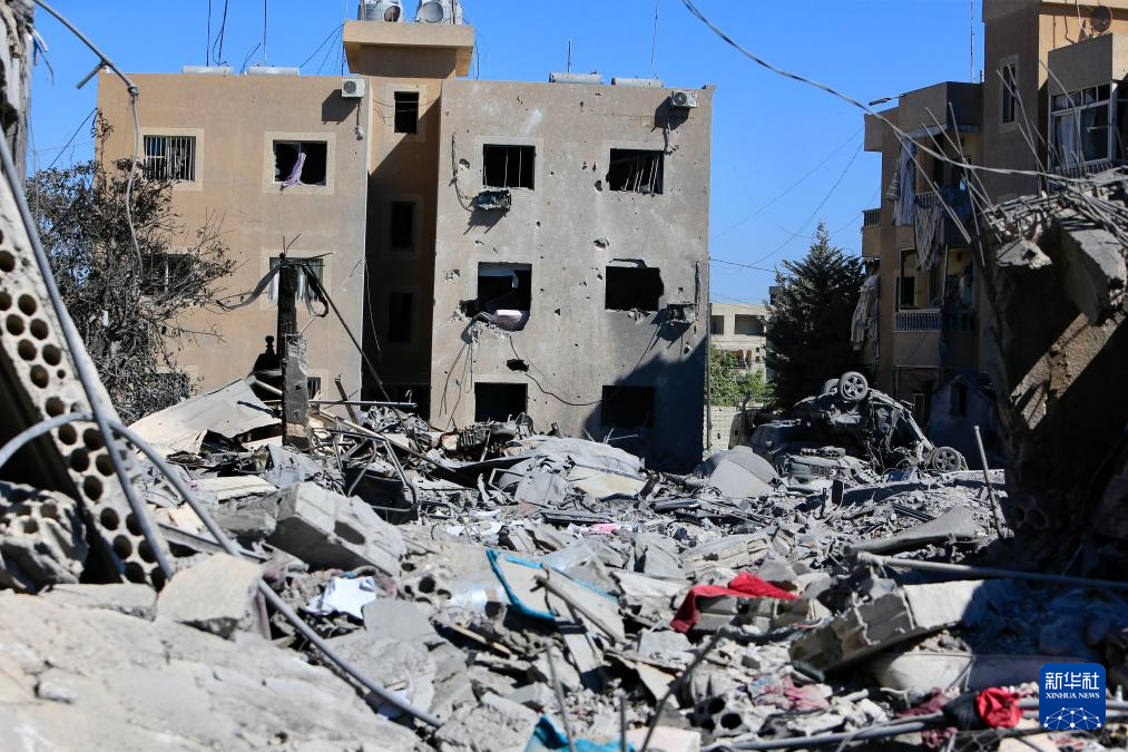 这是9月26日在黎巴嫩南部萨萨基耶镇拍摄的以军空袭后造成的破坏。