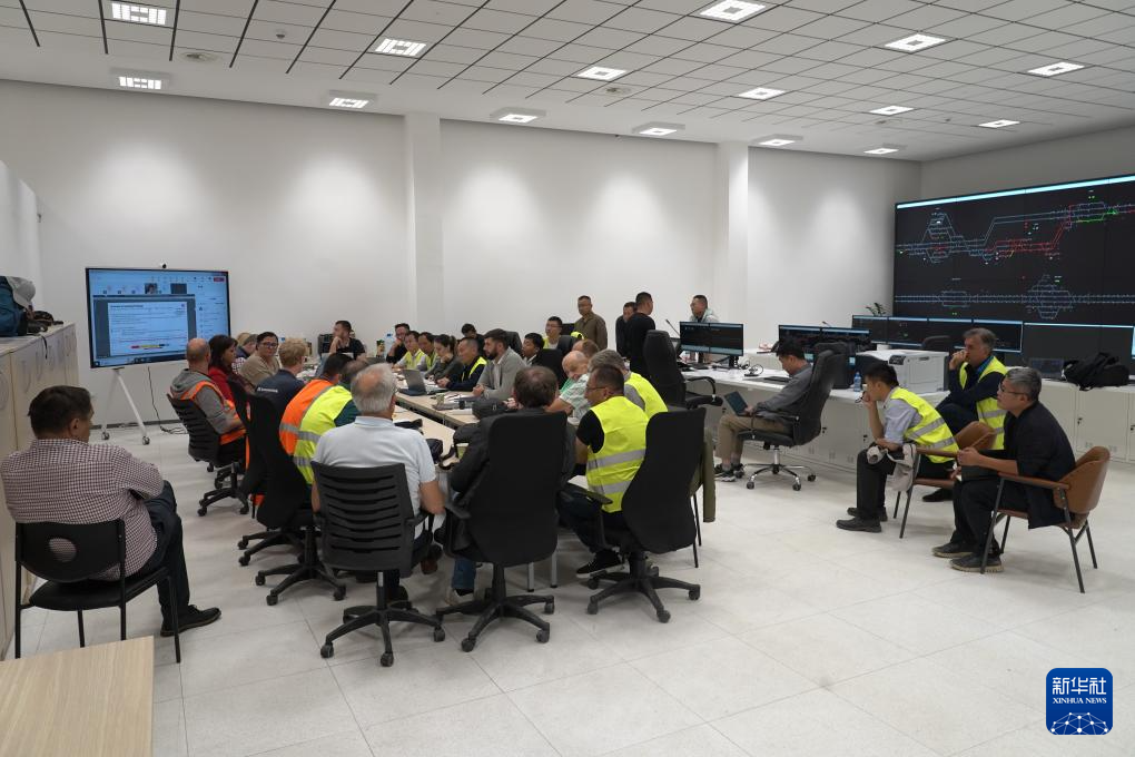 9月27日,在塞尔维亚城市诺维萨德,工作人员在匈塞铁路诺维萨德调度指挥中心开会部署测试工作。