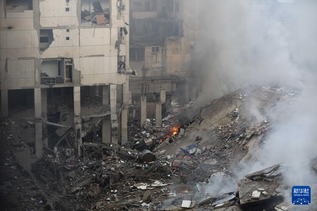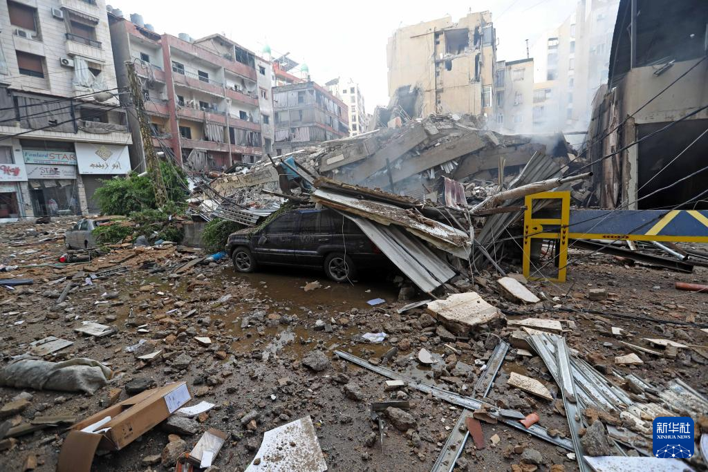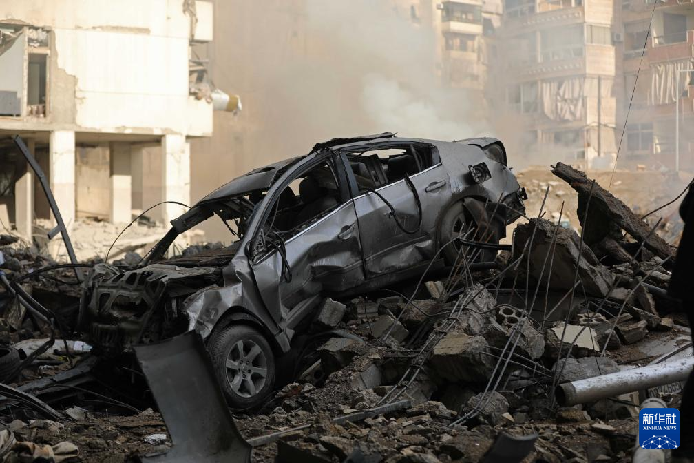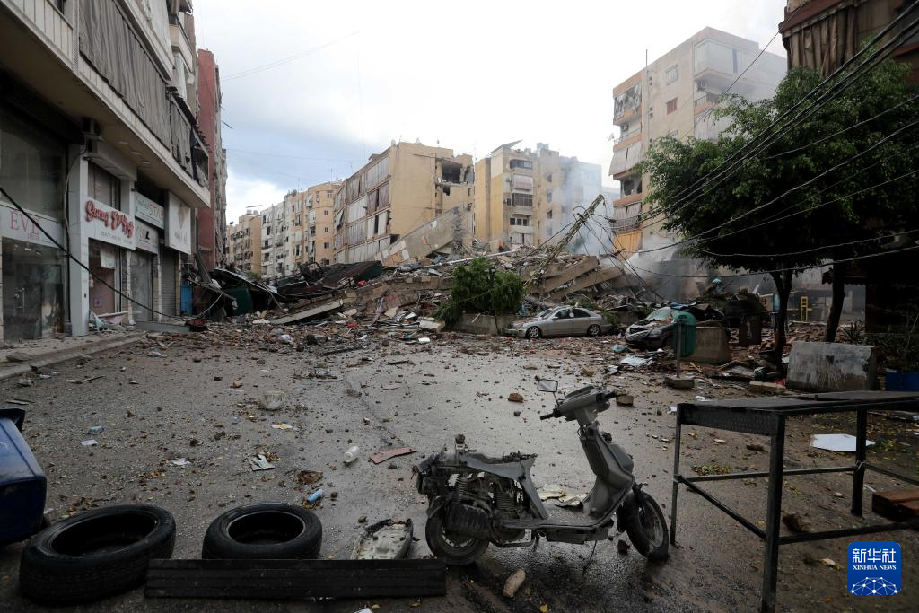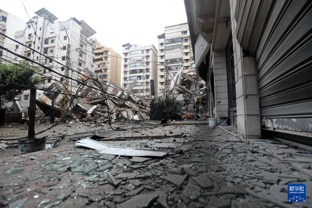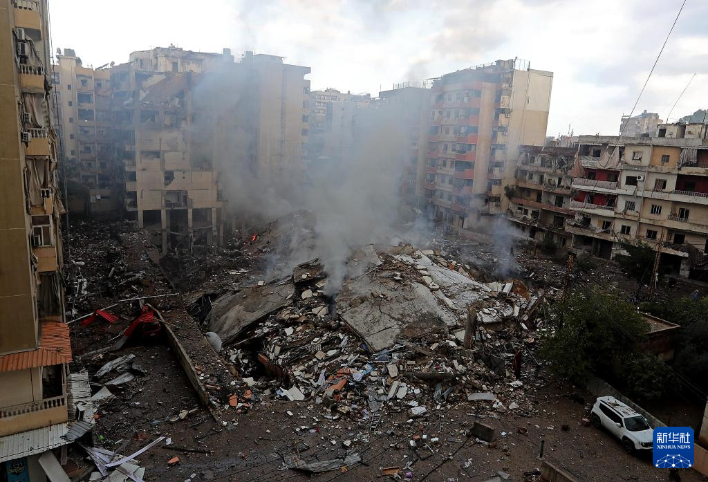 这是10月1日在黎巴嫩首都贝鲁特南郊拍摄的遭空袭后的景象。