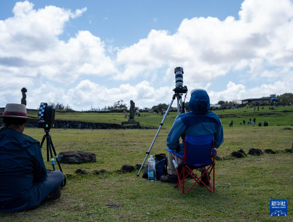 10月2日,人们在智利复活节岛拍摄日环食。