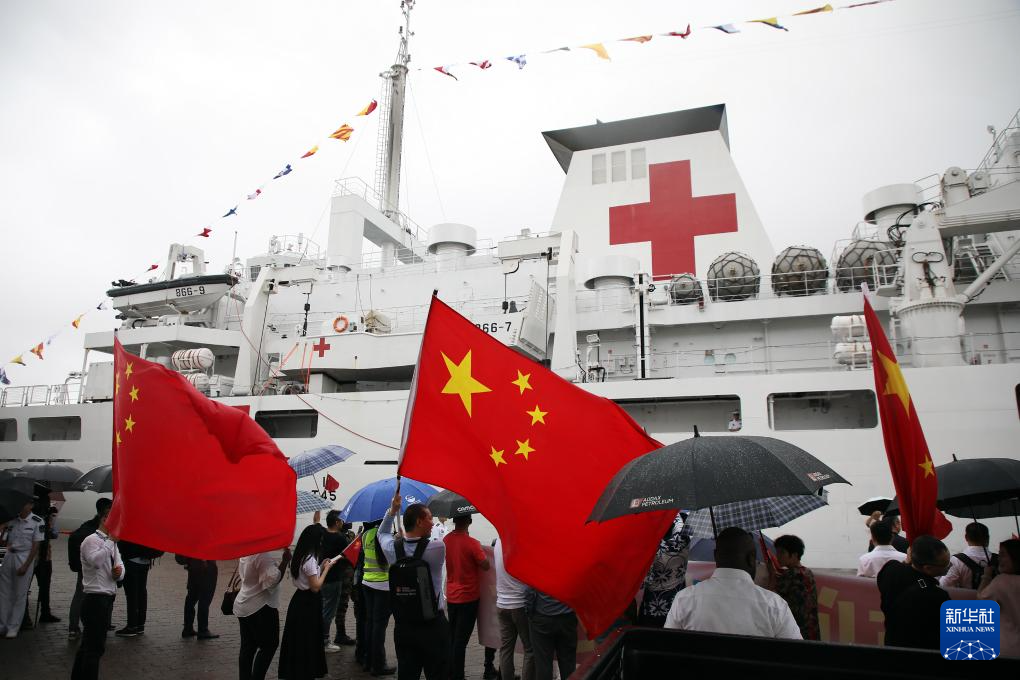 10月7日,中国海军“和平方舟”号医院船抵达喀麦隆杜阿拉港。新华社发(刘志磊摄)
