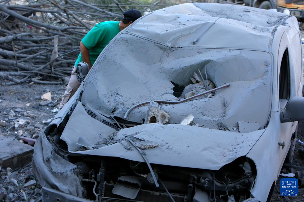 这是10月8日在黎巴嫩安萨里亚拍摄的以军袭击后留下的车辆残骸。新华社发(阿里·哈希绍摄)