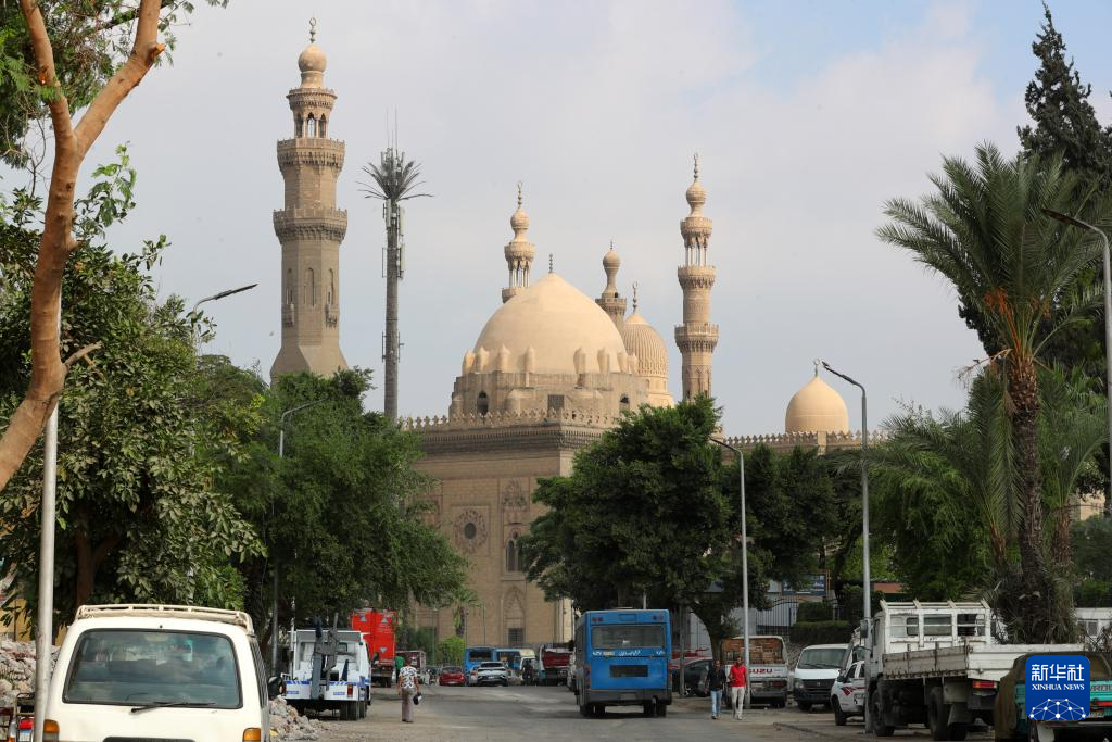 10月10日,游客在埃及开罗老城的爱资哈尔清真寺内拍照。