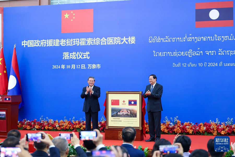 新华社万象10月12日电(记者朱超 刘锴)当地时间10月12日,国务院总理李强在万象同老挝总理宋赛共同出席中国政府援建老挝玛霍索综合医院大楼落成仪式。