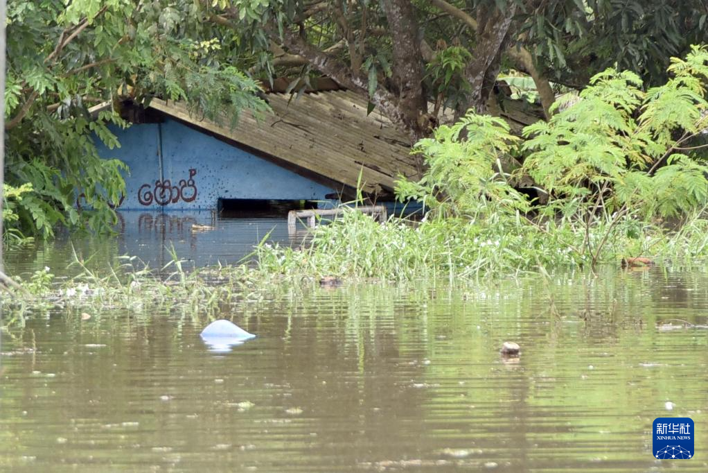 10月12日,在斯里兰卡加姆珀哈,房屋几乎被洪水淹没。新华社发(加扬·萨米拉摄)