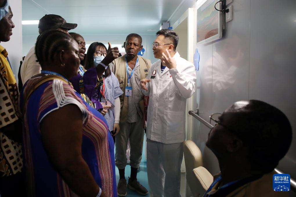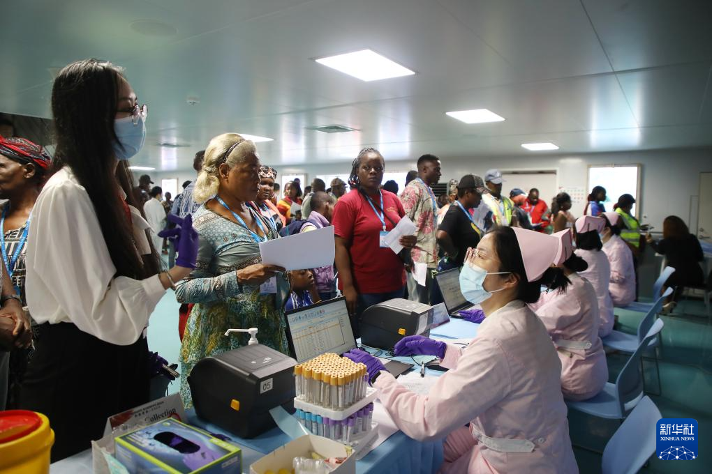 10月9日,中国海军“和平方舟”号医院船在喀麦隆开展医疗服务。
