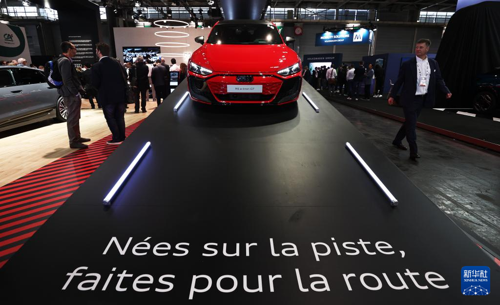 10月14日,人们在法国巴黎凡尔赛门展览中心举行的2024巴黎车展媒体开放日上参观奥迪展台。