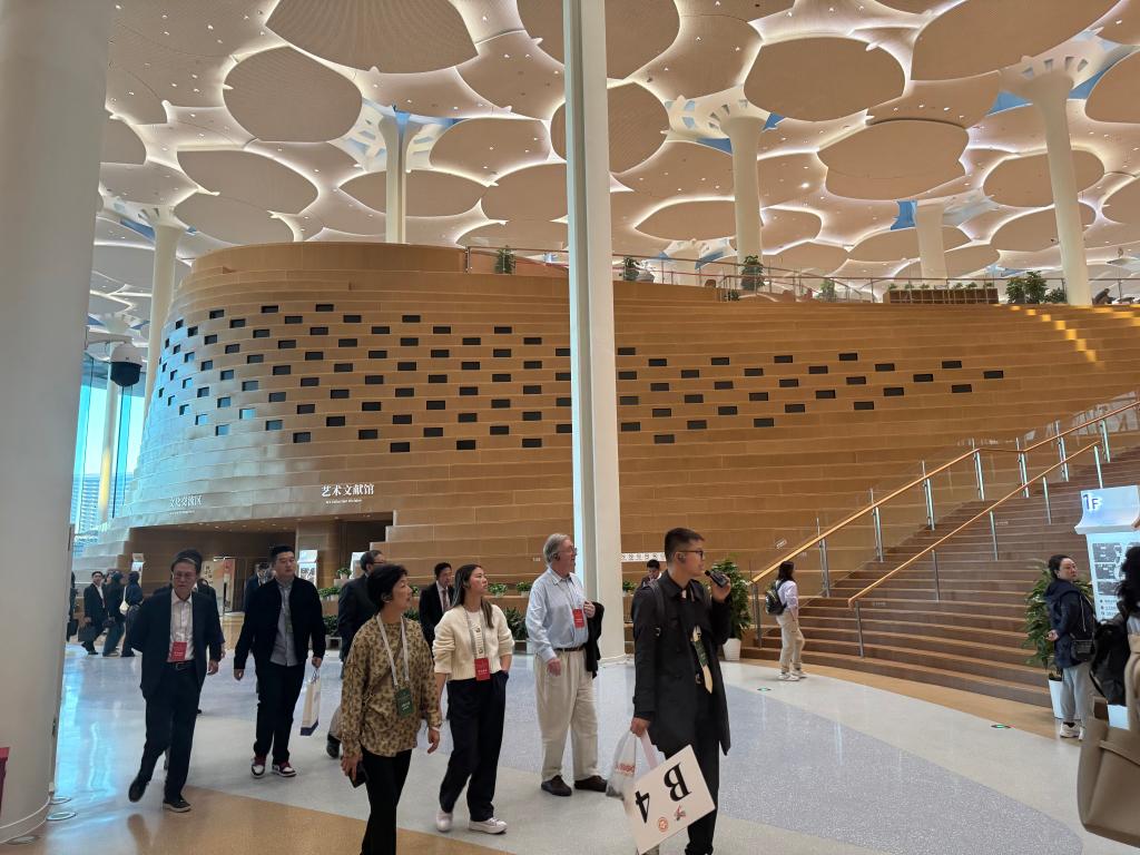 “这座图书馆的建筑样式令人赞叹。这已经是我第十次中国行了,但这是我第一次看到北京城市副中心进行了如此格局庞大的城市规划,并且新增了这么多文化地标。”美中人民友好协会前主席罗伯特·森伯恩感叹道,希望美中双方常来常往,更多美国人能够了解中国。