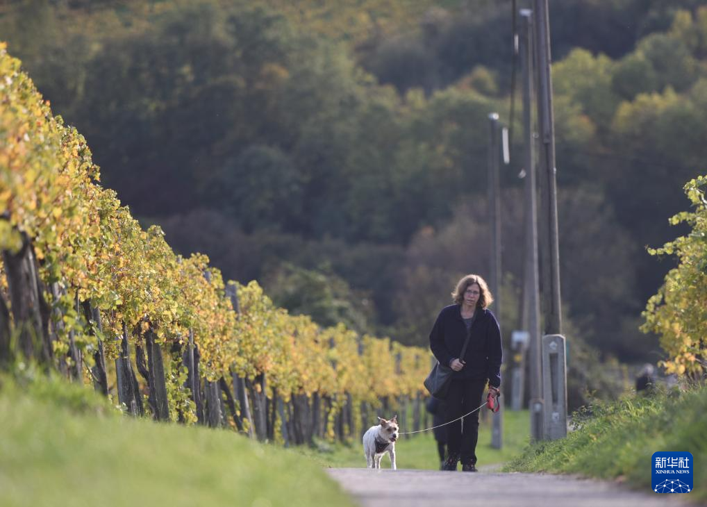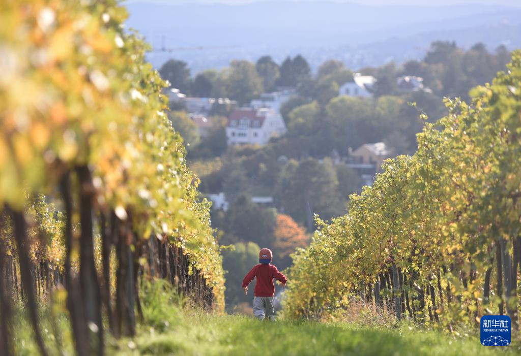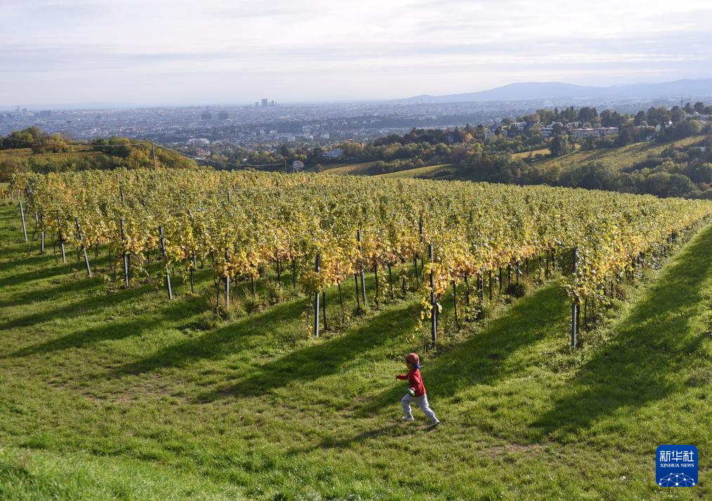 10月15日,在奥地利维也纳市郊的卡伦山上,一名儿童在葡萄园里奔跑嬉戏。
