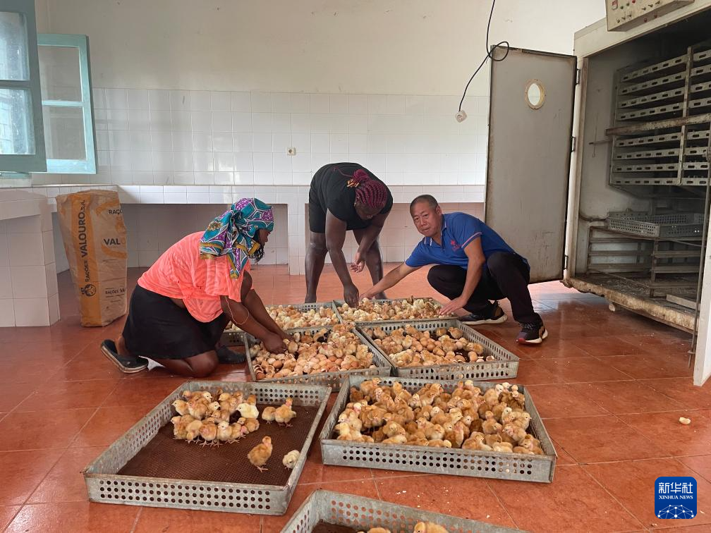 中国援圣普农牧业技术项目组专家在圣多美和普林西比家禽繁育中心指导雏鸡人工孵化技术(2024年10月8日摄)。