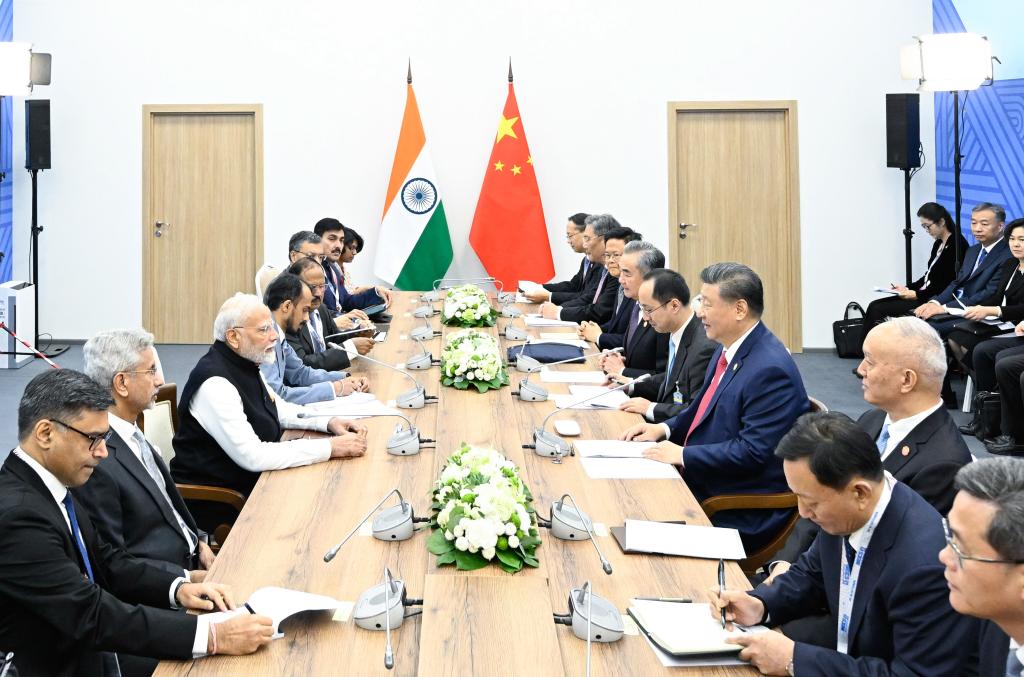 习近平在出席会晤期间会见印度总理莫迪。