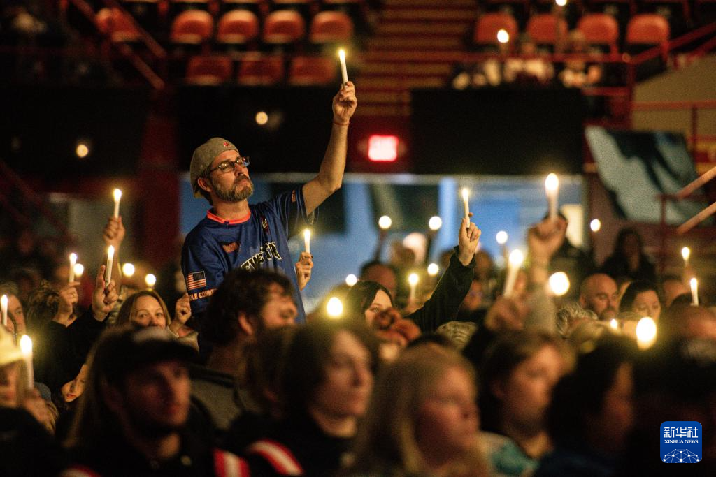 10月25日,人们在美国缅因州刘易斯顿市手举蜡烛悼念枪击案遇难者。