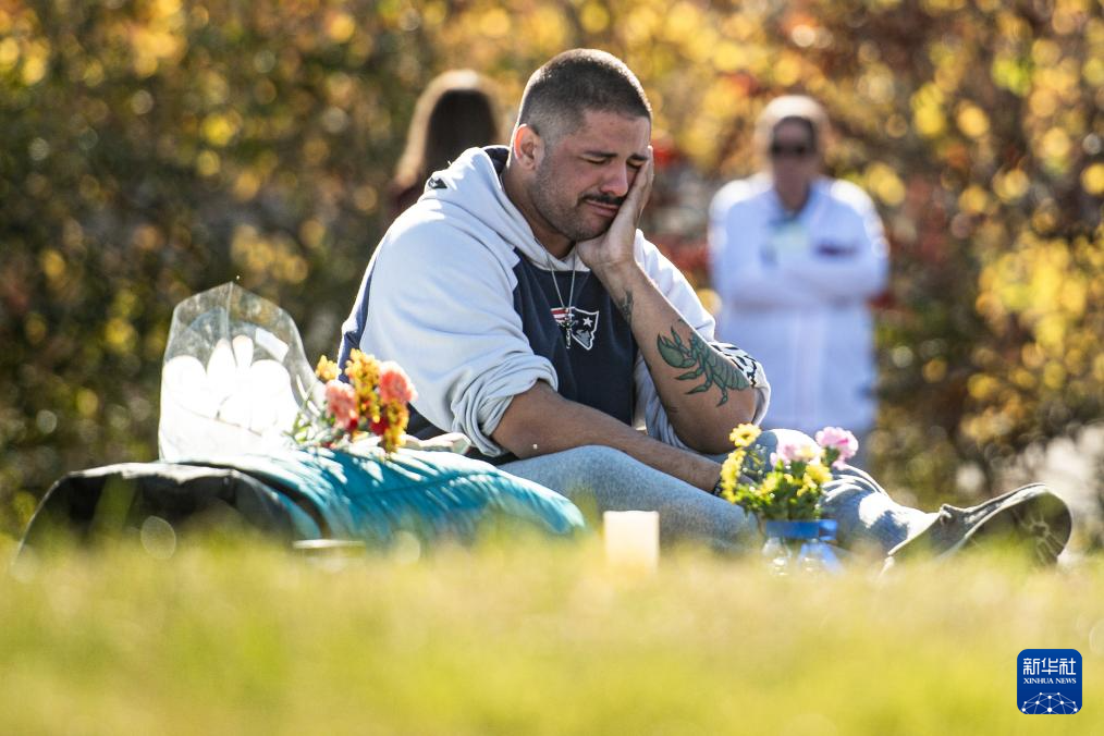 10月25日,一名男子在美国缅因州刘易斯顿市悼念枪击案遇难者。