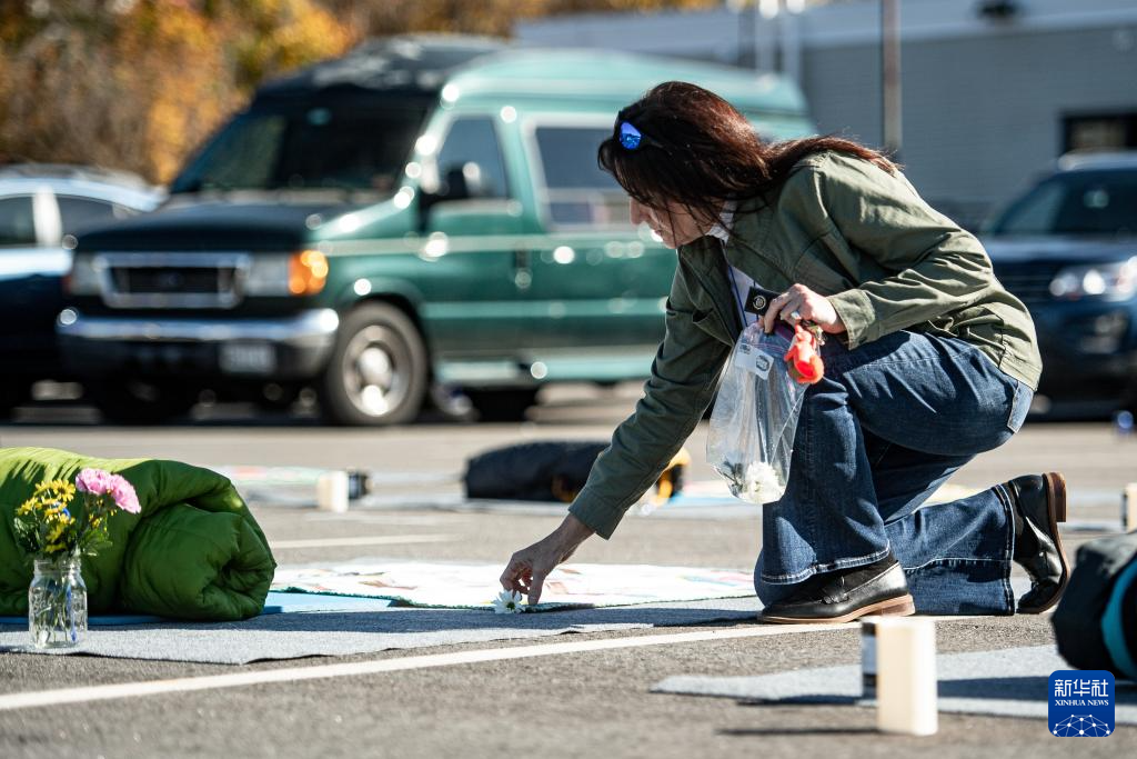 10月25日,一名女子在美国缅因州刘易斯顿市悼念枪击案遇难者。