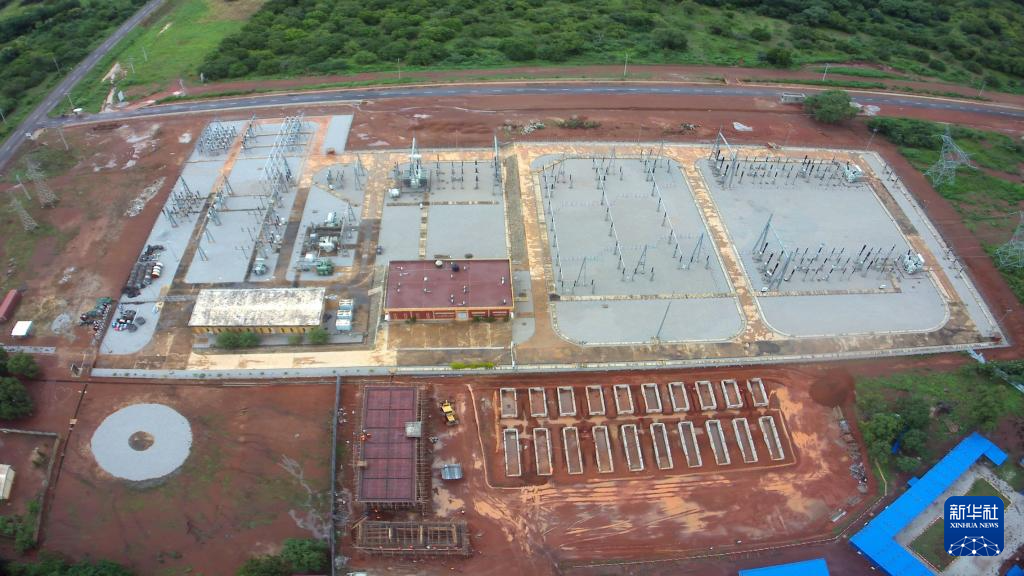 这是8月3日在科特迪瓦本贾利省拍摄的电池储能项目建筑工地(无人机照片)。