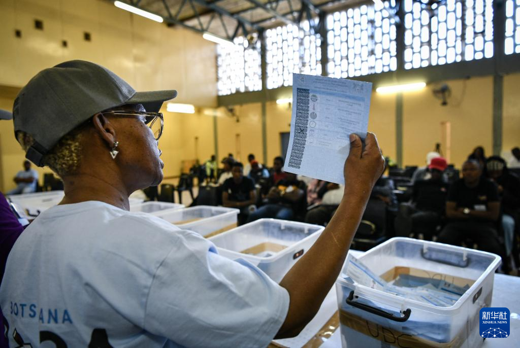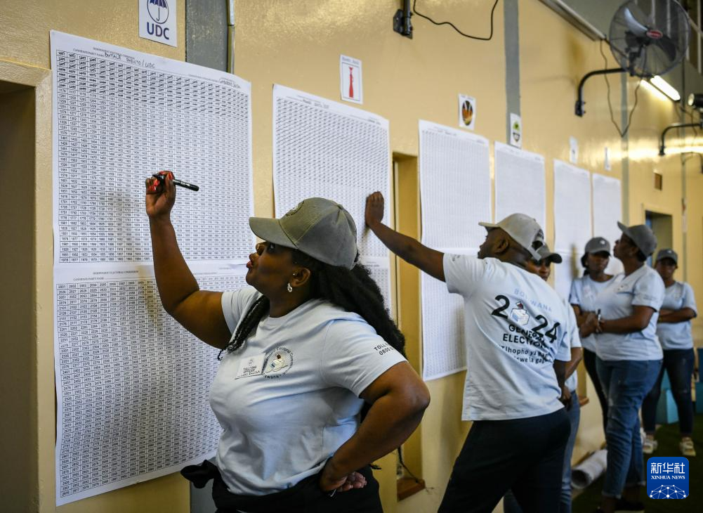 10月30日,工作人员在博茨瓦纳奎嫩区姆莫帕内的一处投票站内启封投票箱,准备开始计票。