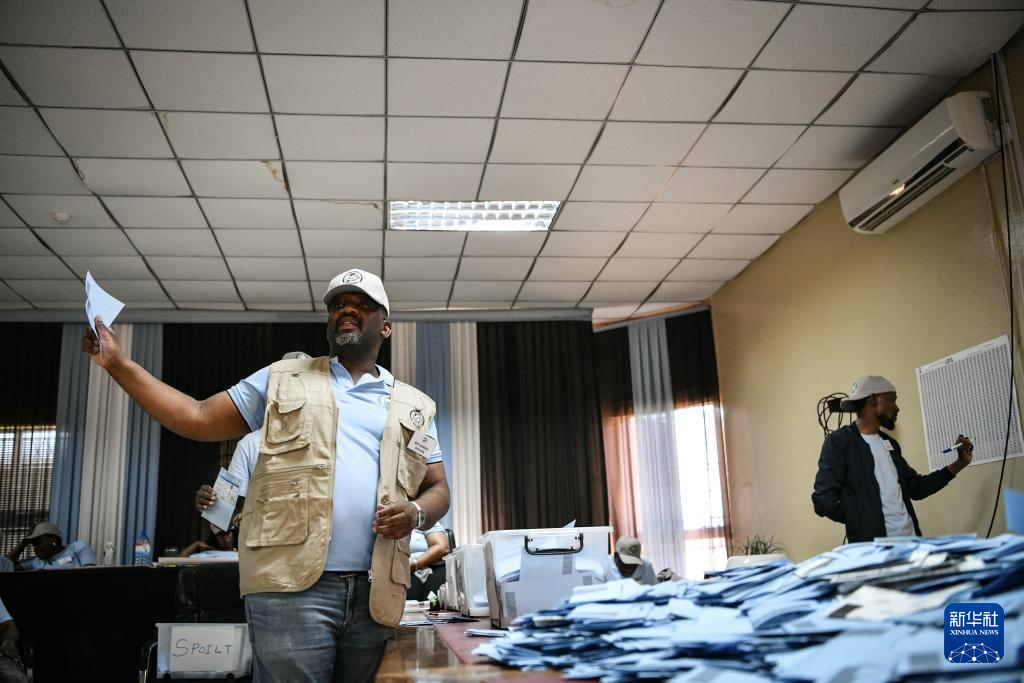 10月31日,工作人员在博茨瓦纳东南部区特洛昆的一处投票站内唱票。